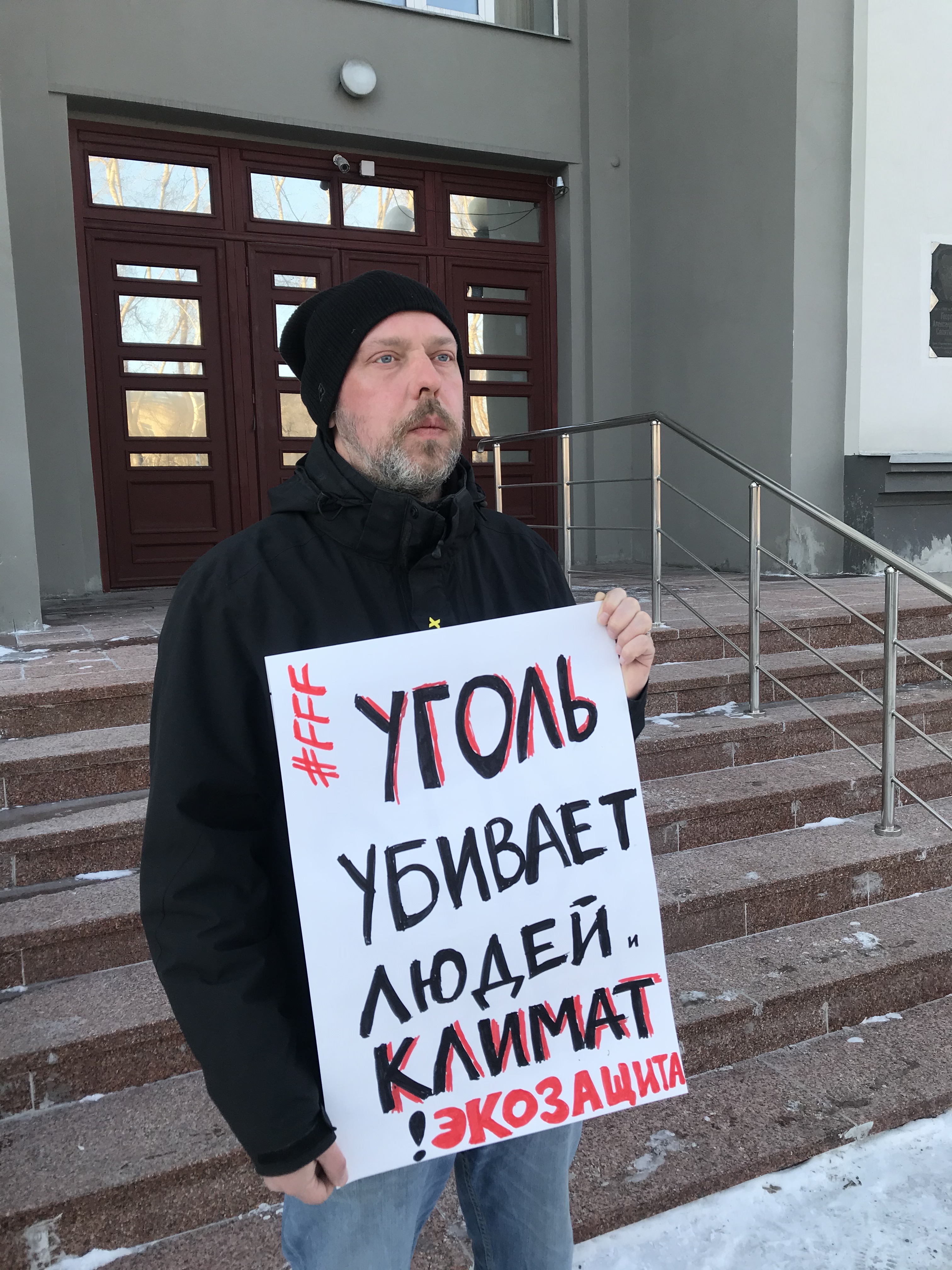 Пикет против расширения добычи угля в Кузбассе представителей «Экозащиты» и российского Fridays for Future, Новокузнецк, март 2020 (Фото: «Экозащита!»)